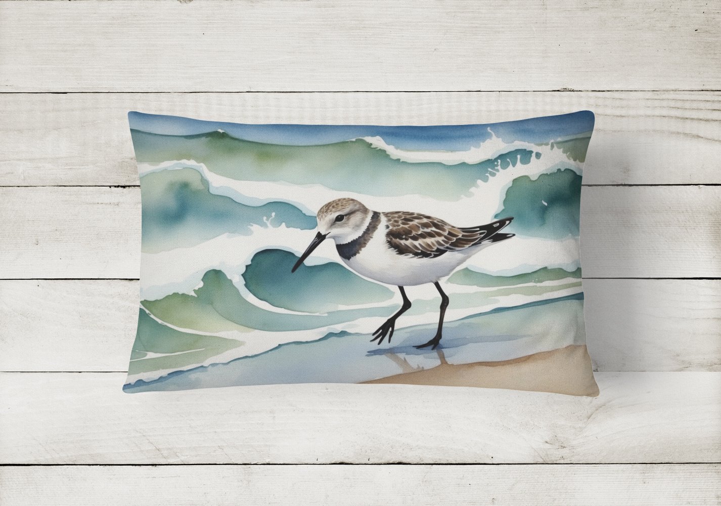 Throw Pillow featuring breed specific Sanderling artwork. Embrace the fusion of comfort and style with Caroline's Treasures Fabric Decorative Pillow. This 12x16 inch outdoor pillow is designed to complement your patio furniture, adding a splash of color and artistry to your outdoor setting. Constructed with a 100% Polyester Fabric pillow sham filled with a plush pillow form, this cushion is as comfortable as it is durable. Our outdoor pillow utilizes a novel fabric, meticulously woven for enhanced water resistance. This soft canvas material is equally suited for your indoor couch as well as outdoor settings such as the patio, porch, or veranda. To ensure enduring vibrance, we employ colorfast dyes resistant to fading even when subjected to weather elements. The making of this pillow involves the delicate sewing together of three fabric pieces to create a sham, into which a polyester insert is carefully placed. The result is an overstuffed pillow that tenaciously holds its shape. With both the sham and the pillow insert crafted in the United States, these handmade pillows are a testament to superior local craftsmanship. Note that as these pillows are handmade, sizes may slightly vary, enhancing their unique appeal. Enjoy comfort in style with Caroline's Treasures Fabric Decorative Pillow.