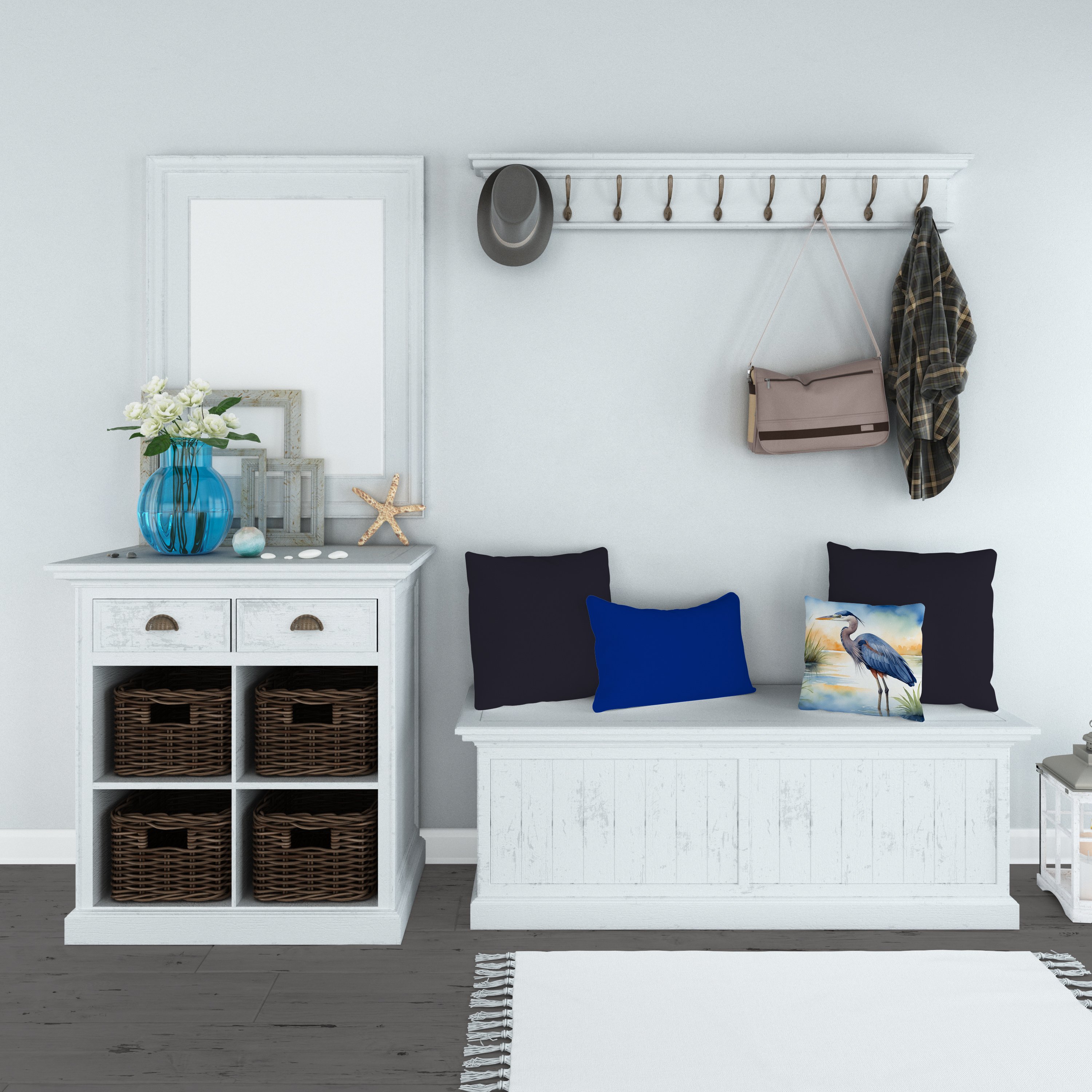 Throw Pillow featuring breed specific Blue Heron artwork. Add a touch of vibrancy and comfort to your outdoor seating with Caroline's Treasures Fabric Decorative Pillow. Measuring approximately 14 inches by 14 inches, this outdoor pillow is crafted to elevate the appeal of your patio furniture, infusing it with vivid color and artistic flair. The pillow includes a 100% Polyester Fabric sham filled with a quality pillow form to provide superior comfort. Innovatively made from our brand new material, specifically woven for its water resistance, this pillow is designed for durability. The soft canvas fabric offers versatility in use, fit for your indoor couch or your outdoor patio, porch, or veranda. The fabric is dyed with colorfast dyes built for resilience against weather conditions, ensuring the pillow retains its beauty over time. Constructed by sewing three fabric pieces to create a sham, the polyester insert is then nestled inside to form the pillow, resulting in an overstuffed pillow that maintains its shape. Both the sham and the pillow insert are proudly made in the United States. As the pillows are handcrafted, there may be minor variations in size, further enhancing their unique charm. Experience comfort in style with Caroline's Treasures Fabric Decorative Pillow.