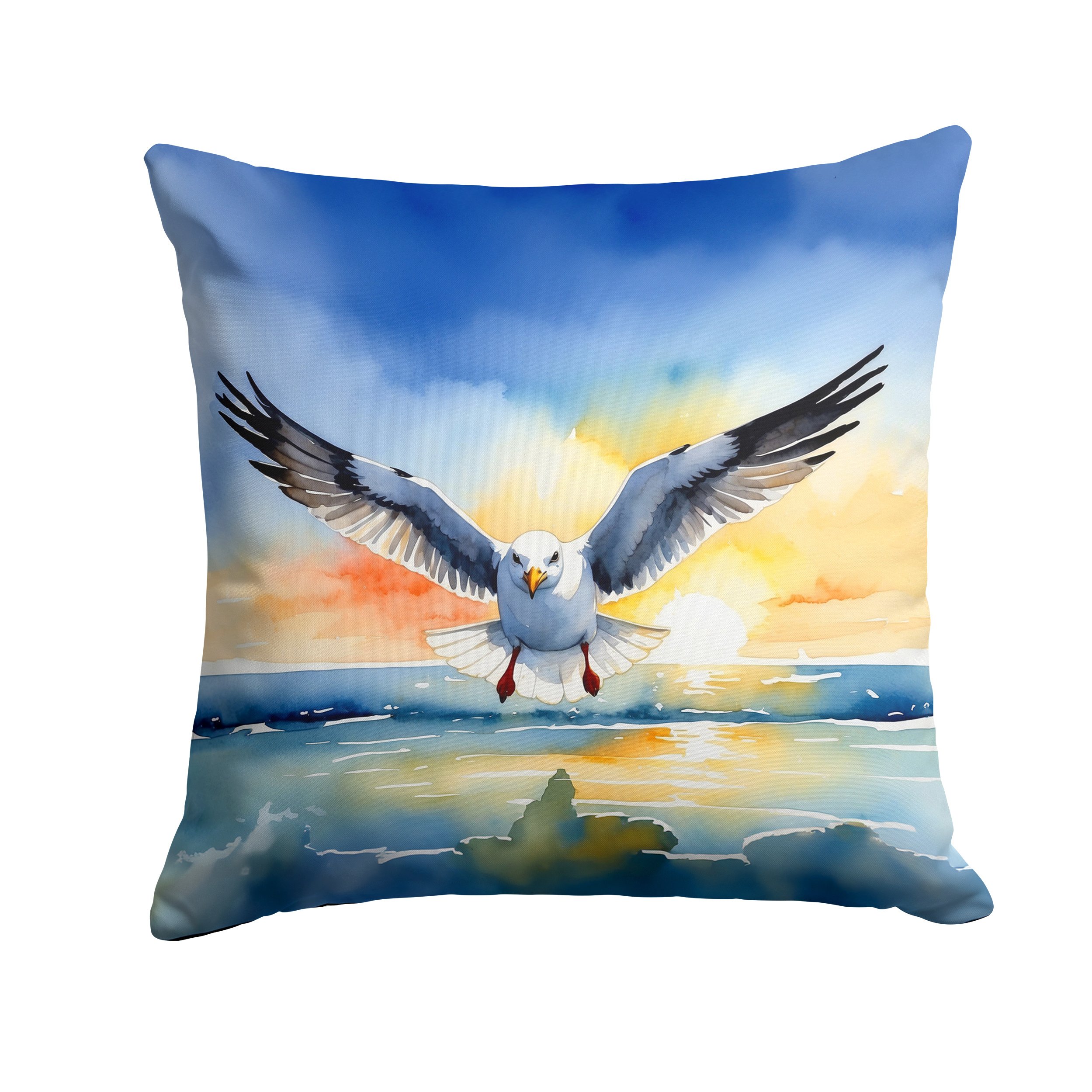Throw Pillow featuring breed specific Gull artwork. Add a touch of vibrancy and comfort to your outdoor seating with Caroline's Treasures Fabric Decorative Pillow. Measuring approximately 14 inches by 14 inches, this outdoor pillow is crafted to elevate the appeal of your patio furniture, infusing it with vivid color and artistic flair. The pillow includes a 100% Polyester Fabric sham filled with a quality pillow form to provide superior comfort. Innovatively made from our brand new material, specifically woven for its water resistance, this pillow is designed for durability. The soft canvas fabric offers versatility in use, fit for your indoor couch or your outdoor patio, porch, or veranda. The fabric is dyed with colorfast dyes built for resilience against weather conditions, ensuring the pillow retains its beauty over time. Constructed by sewing three fabric pieces to create a sham, the polyester insert is then nestled inside to form the pillow, resulting in an overstuffed pillow that maintains its shape. Both the sham and the pillow insert are proudly made in the United States. As the pillows are handcrafted, there may be minor variations in size, further enhancing their unique charm. Experience comfort in style with Caroline's Treasures Fabric Decorative Pillow.