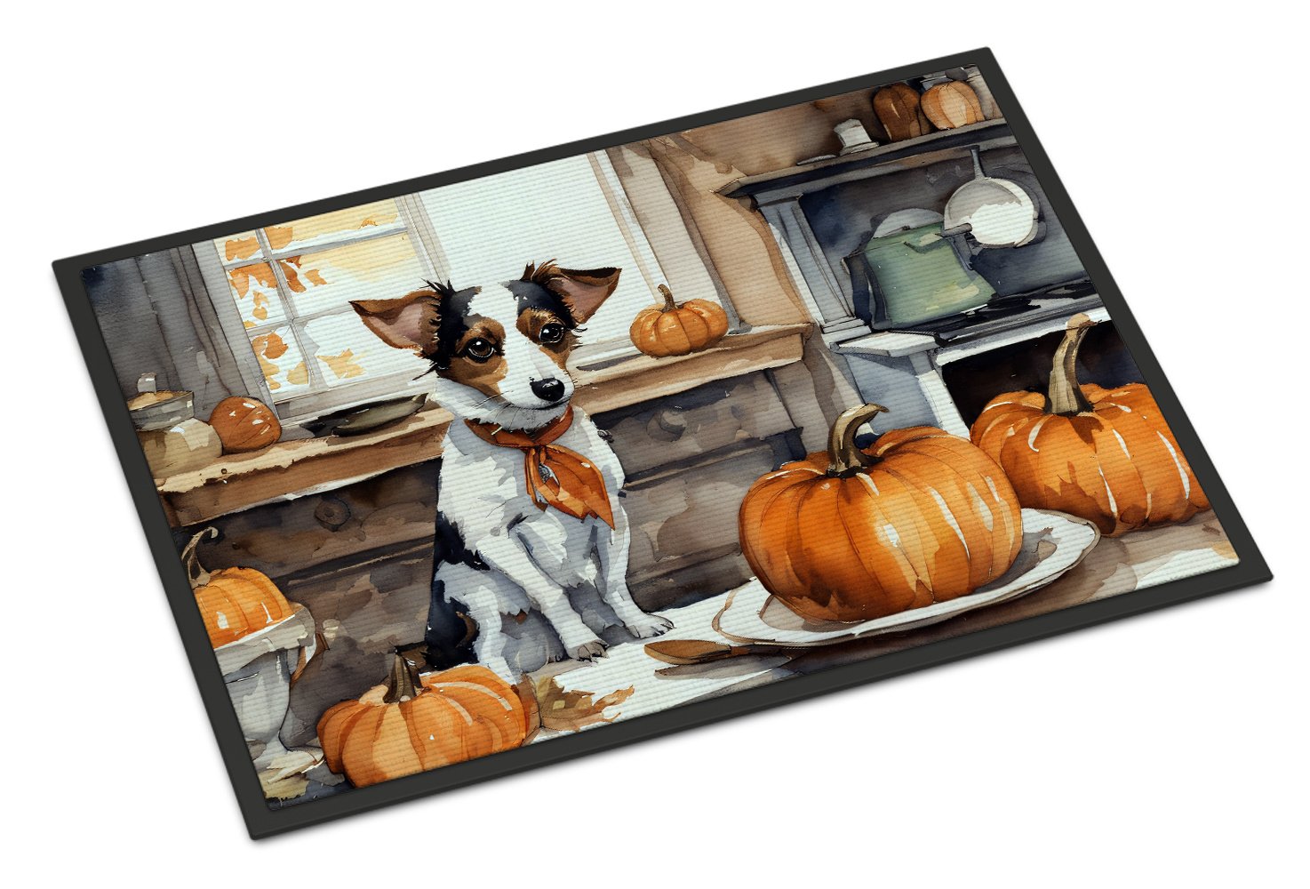 Home > Jack Russell Terrier Fall Kitchen Pumpkins Doormat Front Door Mat Indoor Outdoor Rugs for Entryway, Non Slip Washable Low Pile, 24H X 36W